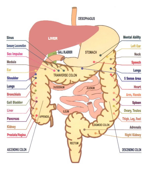Every system and organ of the body is connected to the colon by reflex points.